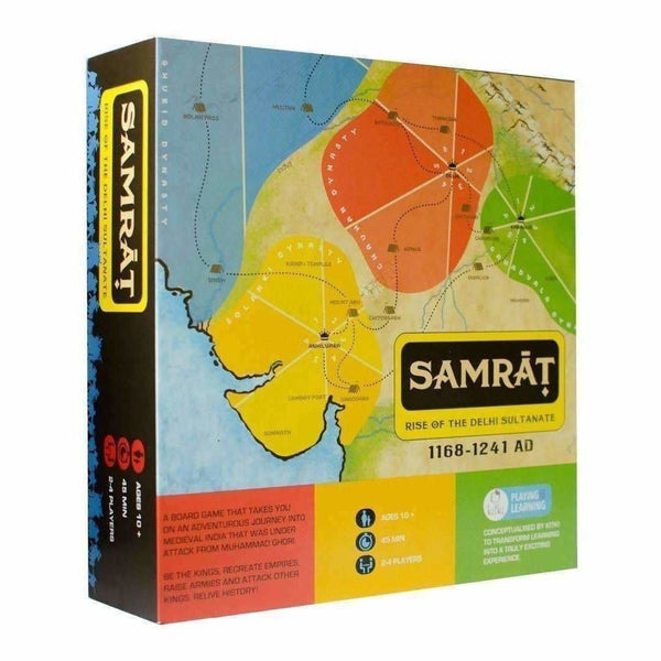 Samrat strategy board game based on Indian Kings History that takes you back to 12th - 13th century medieval India. This is the time when Muhammad Ghori unravels his plans to take over India. India was ruled by Prithviraj Chauhan from Delhi and Raja Jaichand from Kannauj in the current state of Uttar Pradesh. To the west, Gujarat was under the rule of Raja Bhimdev II. While history notes the success story of how Muhammad Ghori defeats these kings, Samrat gives the players another chance to rewrite history.