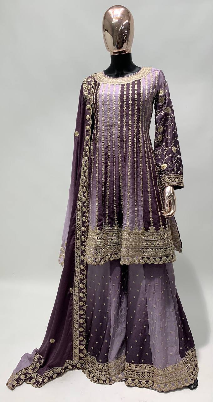 Teeya Creation Multi Colour Chinon Silk Heavy Embroidery Sequence Work Fully Stitched Salwar SuitA full-stitched Chinon top (up to 42") with Santoo...