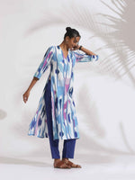 trueBrowns Blue Ikat Print Muslin Kurta Set