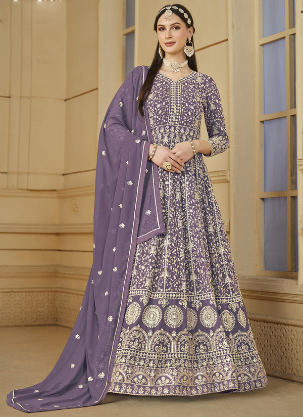 Vegaa Fashion Designer Lavender Faux Georgette Embroidery Anarkali Suit