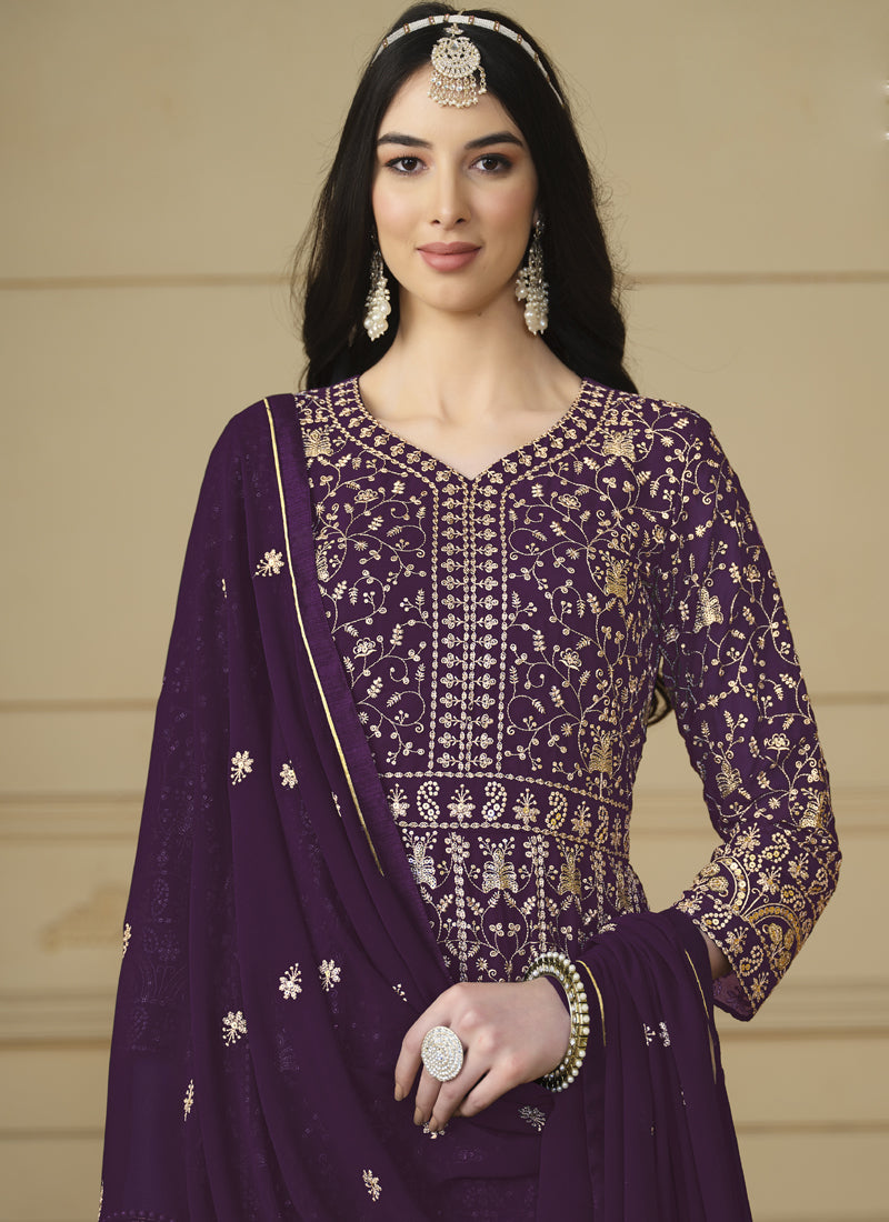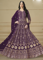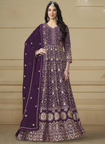 Vegaa Fashion Designer Violet Faux Georgette Embroidery Anarkali Suit