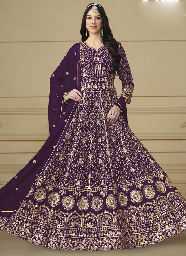 Vegaa Fashion Designer Violet Faux Georgette Embroidery Anarkali Suit - S