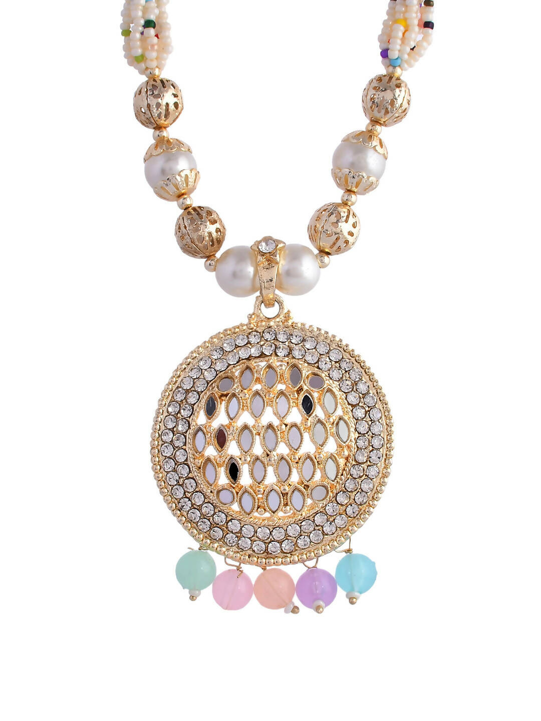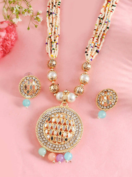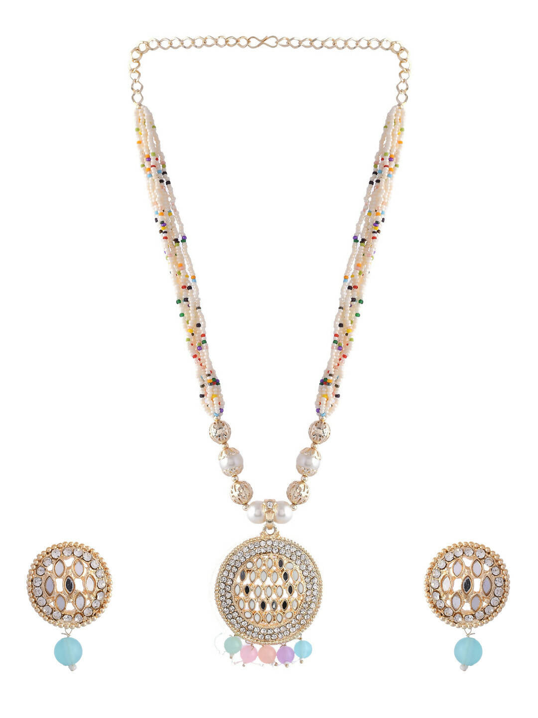VOJ Women Multi Color stainless steel Jewellery SetIntroducing our enchanting Gold-Plated and White Pearl Kundan Multi-Color Beaded Jewellery Set, ...