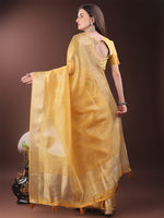 Astita Elegant Gold Mustard Organza Saree with Zari Border | Party Wear Lightweight Saree with Blouse for Women - Default Title