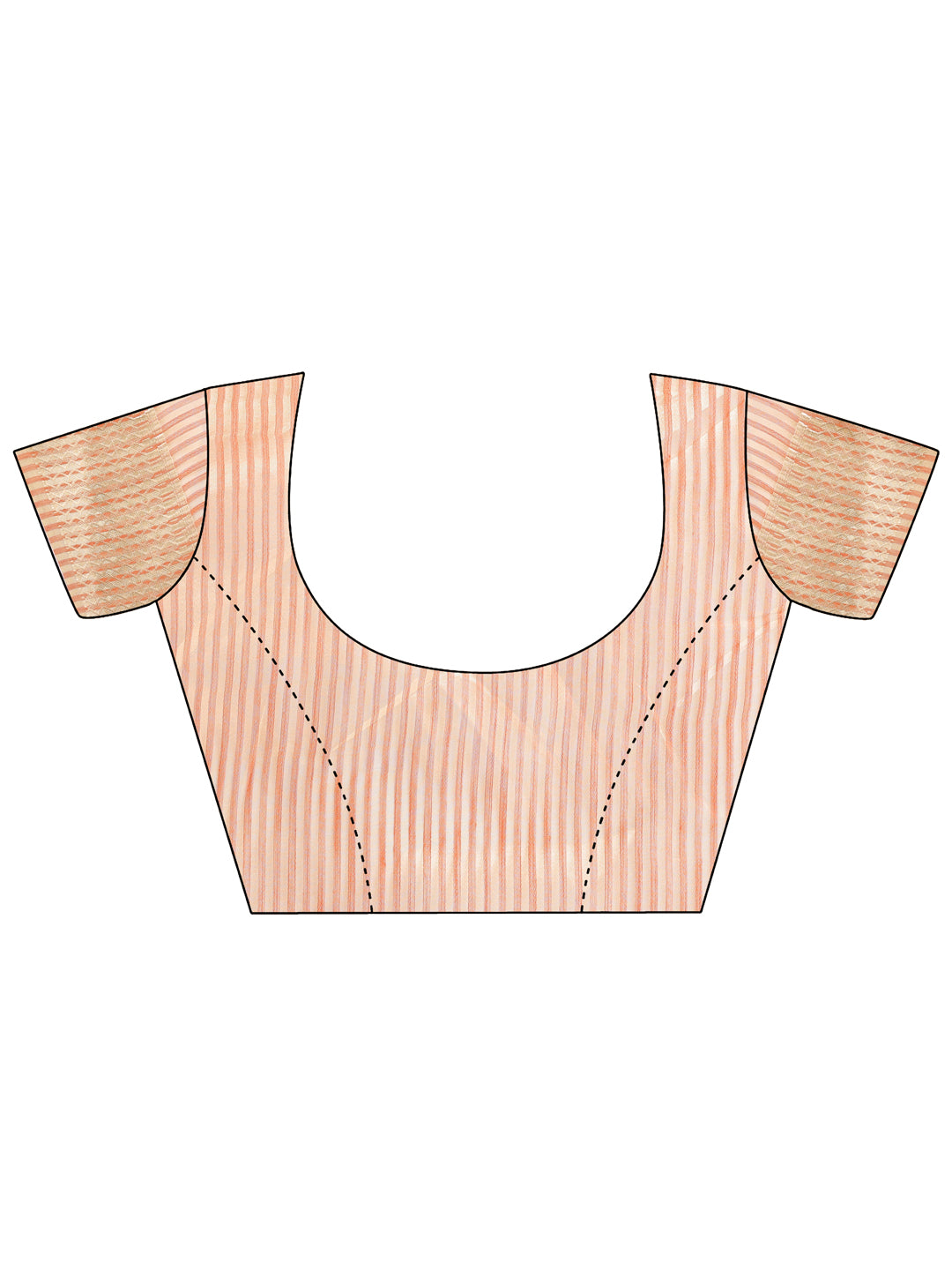 Add timeless grace to your ethnic wardrobe with this stunning gold Peach organza saree. Crafted from soft, sheer organza fabric, it features delicate woven zari lines and a rich golden pallu for a royal yet minimalist look. The saree comes with a complementing unstitched blouse piece, perfect for weddings, festive occasions, and elegant evening events. Designed for the modern woman who appreciates tradition with a touch of glam.