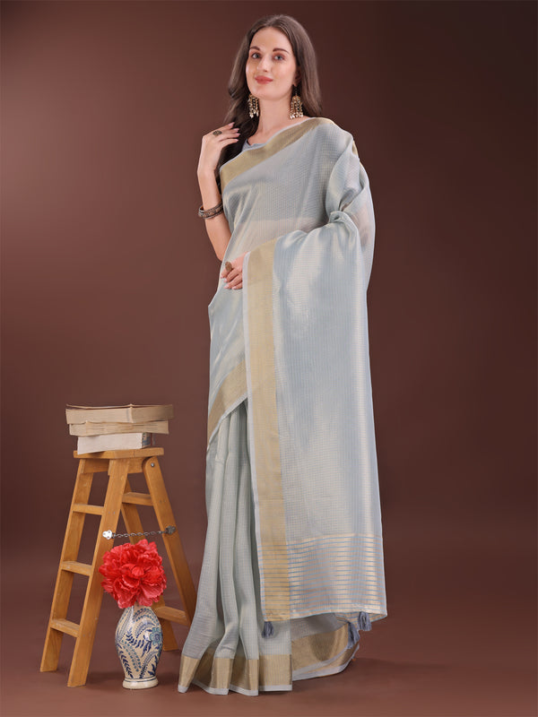 Astita Elegant Grey Organza Saree with Zari Border | Lightweight Transparent Saree with Blouse Piece for Festive & Daily Wear