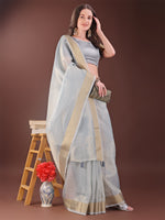 Astita Elegant Grey Organza Saree with Zari Border | Lightweight Transparent Saree with Blouse Piece for Festive & Daily Wear - Default Title
