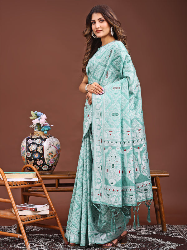 This sea green printed saree is more than a piece of fabric—it's a feeling wrapped in tradition. A companion for your everyday grace and treasured memories, it’s crafted for the woman who cherishes elegance in simplicity.