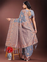Astita Grey Linen Cotton Saree with Woven Geometric Zari Motifs - Elegant Festive Wear for Women - Default Title