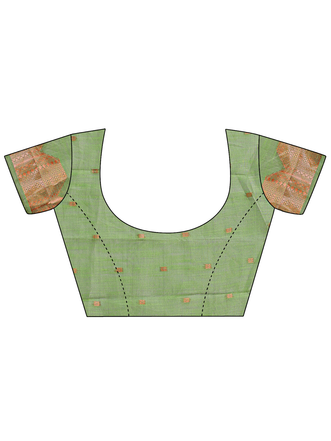 Experience elegance with ease in this Light Green linen cotton saree, adorned with geometric woven zari motifs and a beautifully designed pallu. It’s soft, breathable, and perfect for everything from office to intimate celebrations.