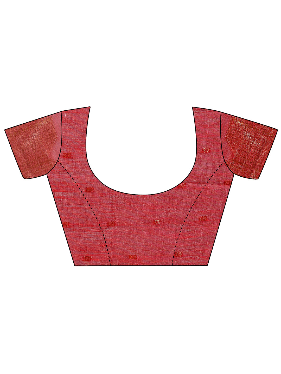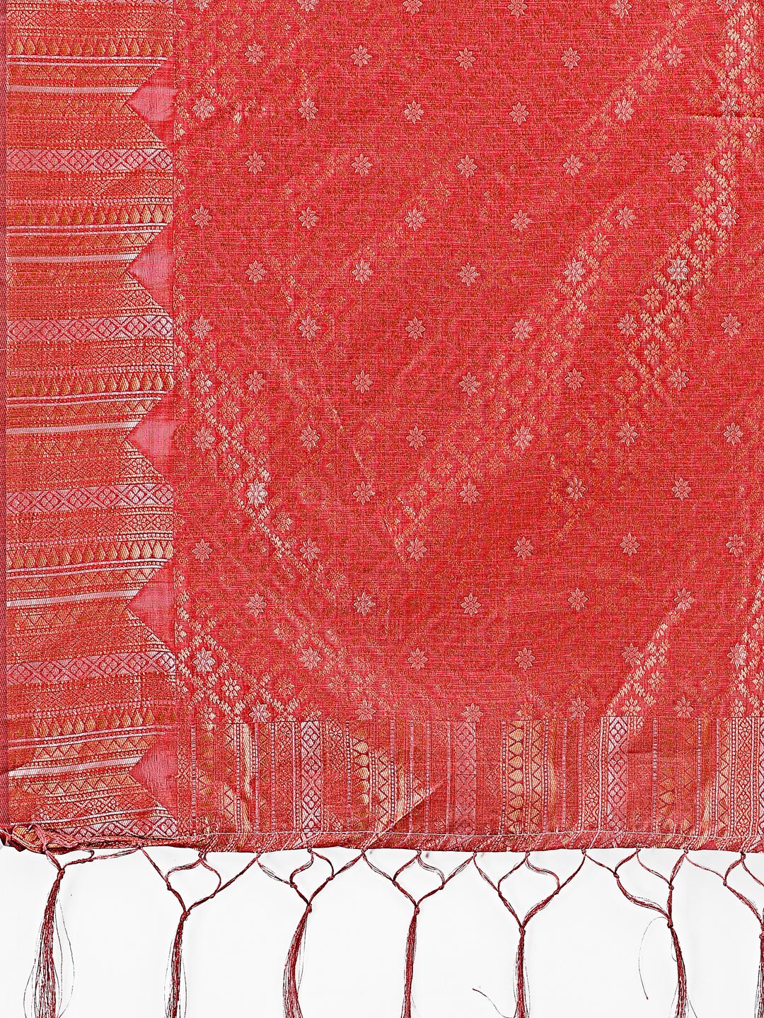 Astita Red Linen Cotton Saree with Woven Geometric Zari Motifs - Elegant Festive Wear for Women - Distacart