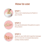 • Take balm on your hands, rub them, and apply it on the baby's body. Massage it for 3 minutes till it gets absorbed in the skin.
