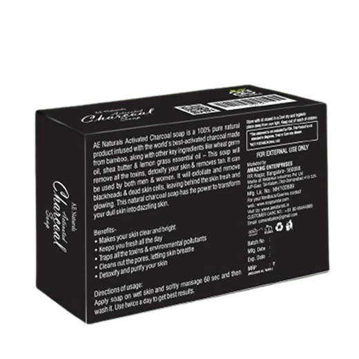 Ae Naturals Activated Charcoal soap Makes your skin clear and bright Keeps you fresh all the day Traps all the toxins & environmental pollutant...