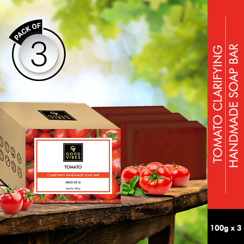 Good Vibes Tomato Handmade Soap is the best choice that thoroughly removes suntan and leaves your skin glowing! Refresh, rejuvenate and revitalize your skin by using our range of handmade soaps that comprise ingredients that are specially handpicked to suit your skin. They are 100% handmade with the expertise of craftsmanship. They come in a pack of three so that you get to keep the natural goodness for a long period of time. What's the wait? Bring the traditional goodness home with Good Vibes Handmade Soap Bars