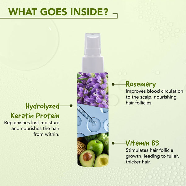 • Promotes Hair Growth: Packed with the goodness of Rosemary, Hydrolyzed Keratin & Vitamin B3, it stimulates hair growth naturally, giving you thicker, fuller hair over time.