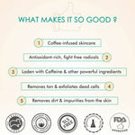 The mCaffeine Coffee De-Tan Kit removes tan and dead skin and polishes the skin. It has the Coffee Face Scrub & Coffee Face Mask for the face and Coffee Body Scrub for the body. Coffee is an excellent exfoliator, it buffs away all the dirt, pollution and impurities from the skin. Coffee is also rich in antioxidants that help fight free radicals. It eases out fine lines, cellulite and stretch marks. Coffee is a natural source of caffeine which tones and reduces the puffiness of the skin. The Coffee De-tan Kit is the one-stop solution to remove tan and get healthy skin.