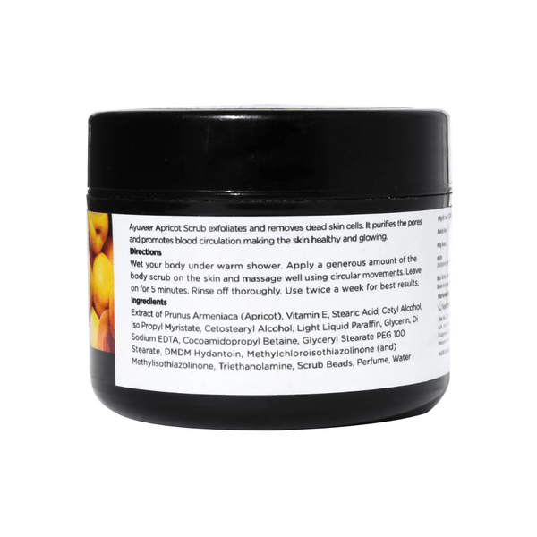 Ayuveer Apricot Scrub exfoliates and removes dead skin cells. It purifies the pores and promotes blood circulation making the skin healthy and glowing