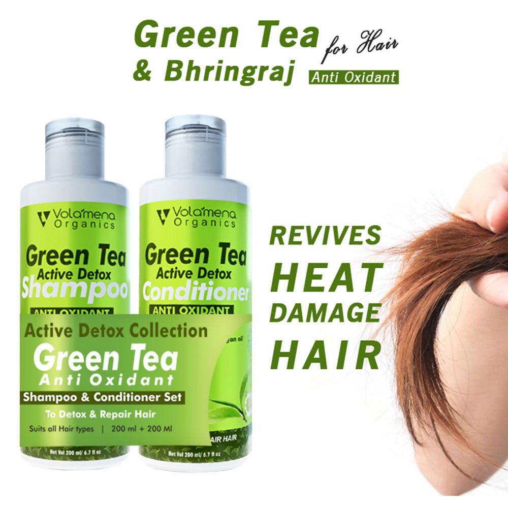 • Volamena Green Tea & Bhringraj Shampoo and Conditioner contains antioxidant rich green tea and bhringraj which provides an effective remedy for replenishing hair after heat-styling damage and boosting hair growth. This pack contains