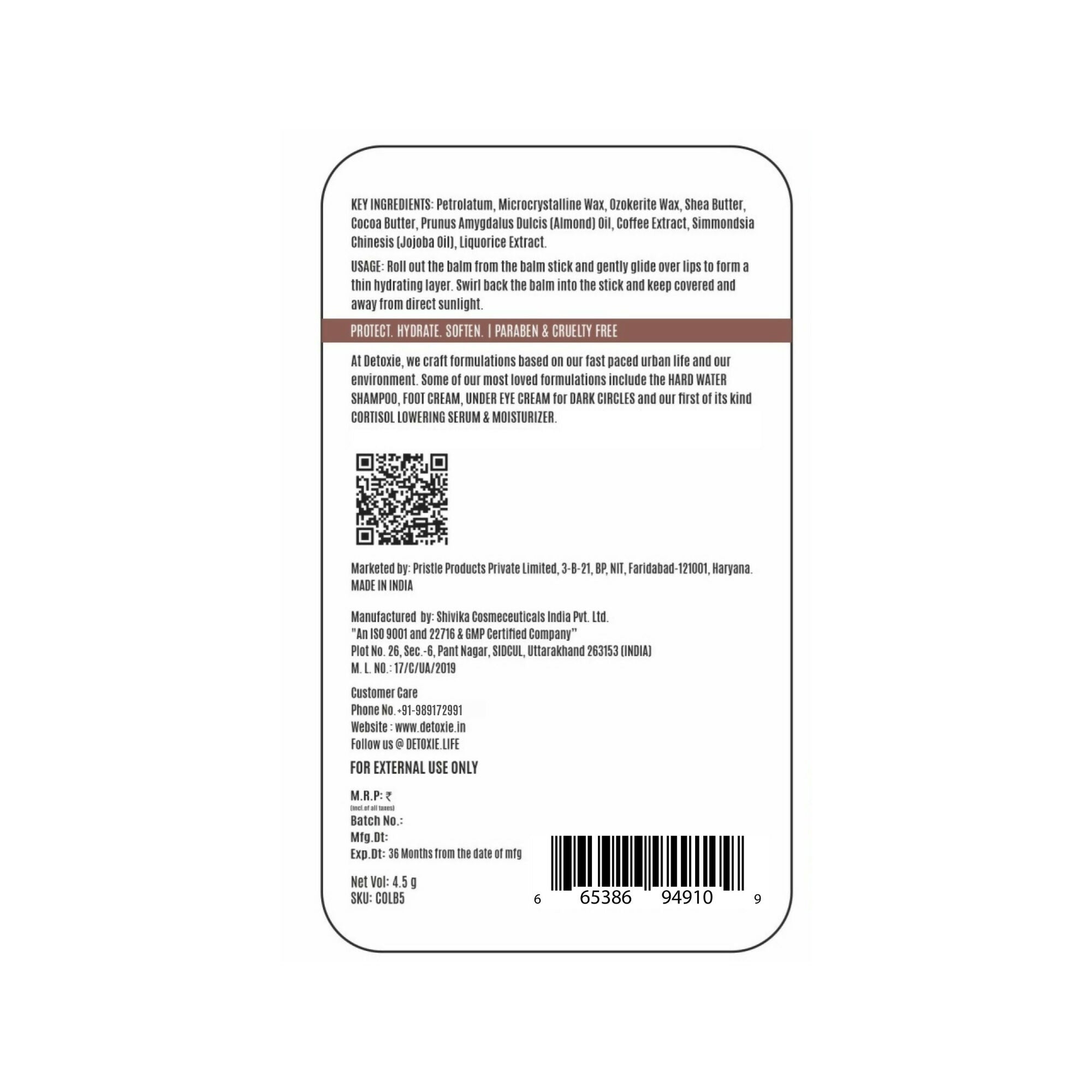 Detoxie Lip Balms Coffee With Shea Butter & Liquorice: Detoxie Lip Balm Coffee with Shea Butter & Liquorice is crafted with a mix of natura...