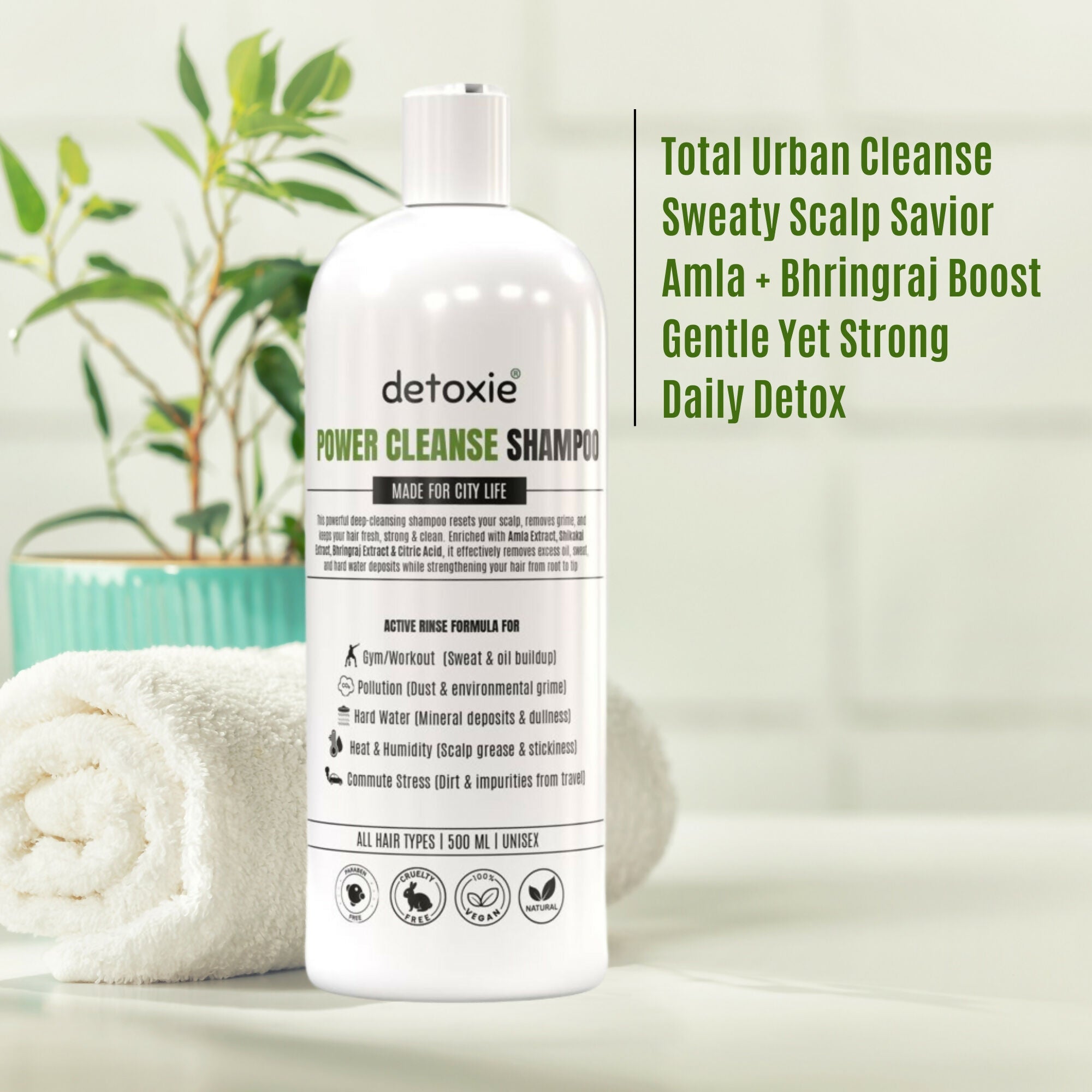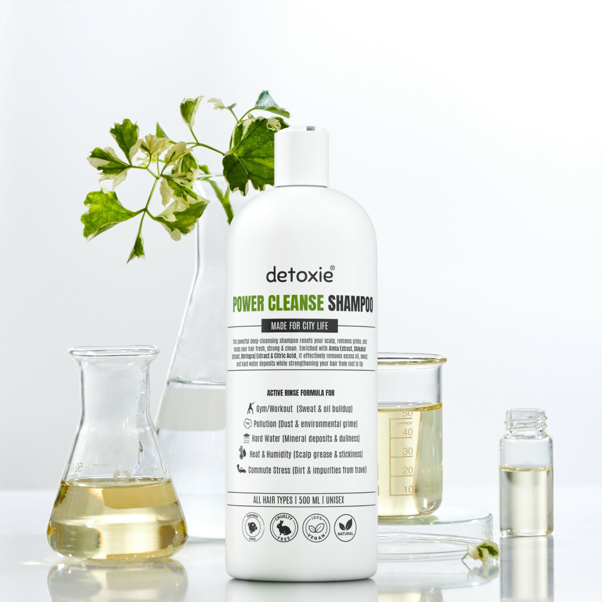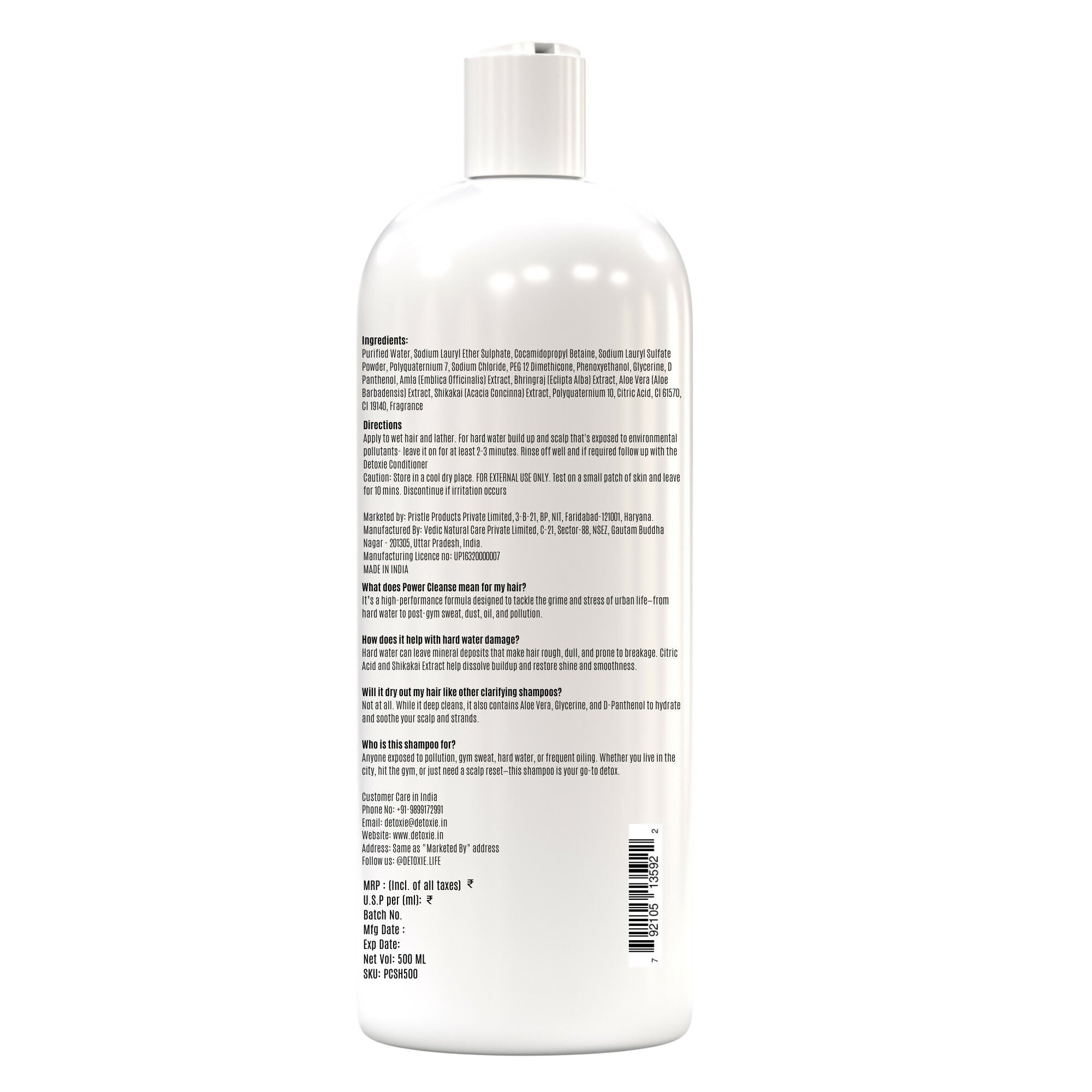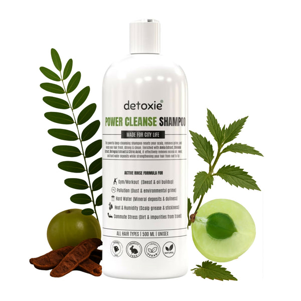 Detoxie Power Cleanse Shampoo is designed for general hair care. The shampoo includes ingredients commonly used in hair cleansing routines, such as Aloe Vera, Citric Acid, Bhringraj, Amla, and Shikakai. It comes in a 200 ml bottle and can be used as part of a regular hair care regimen.