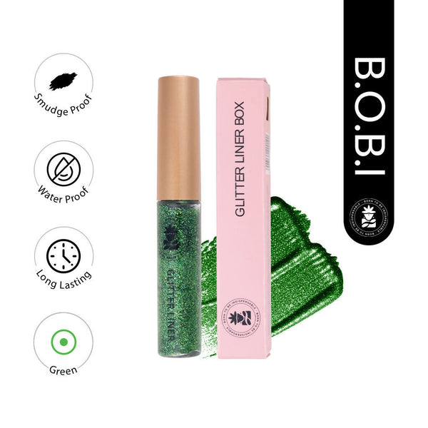 BOBI Glitter Eyeliner in Green Diamond Sparkle Finish provides a glitter effect for eye makeup. The eyeliner is designed for easy application and can be used as part of everyday makeup or for special occasions. It can be layered over other eyeliners or used alone for a decorative look.
