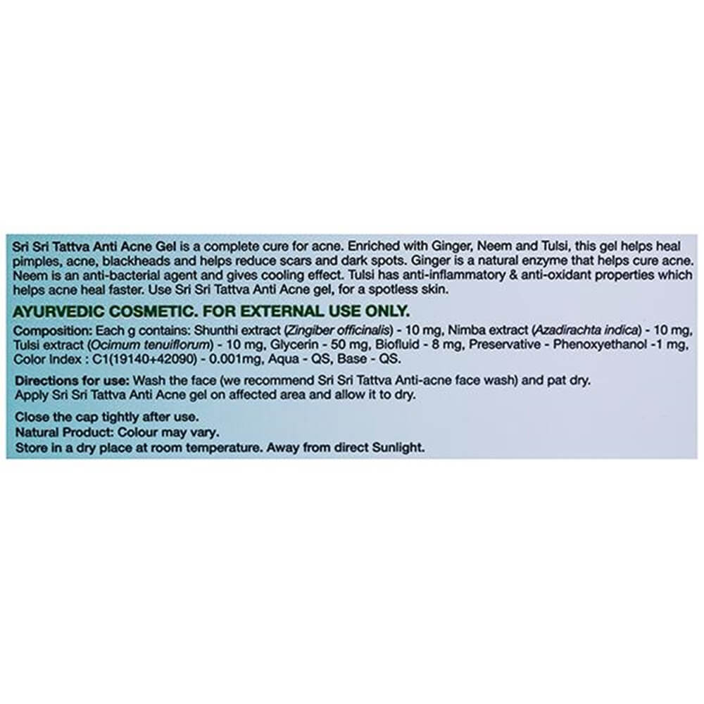 Sri Sri Tattva Anti Acne Gel Ingredients:  Made from rich collection of natural and herbal ingredient, this package is made from: Ginger extract N...