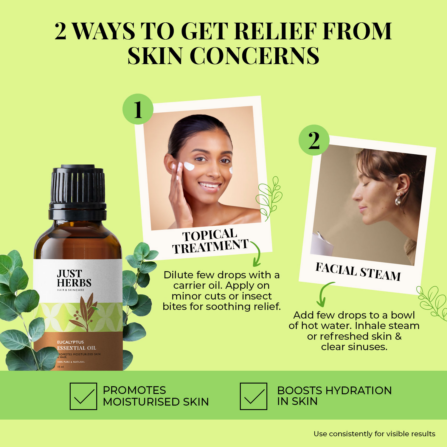 Just Herbs Eucalyptus Essential OilAbout The Product:Just Herbs Eucalyptus Essential Oil is a revitalizing addition to your wellness and self-care ...
