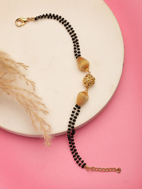 NVR Women Gold-Polished & Black Brass Hand Mangalsutra Link Bracelet