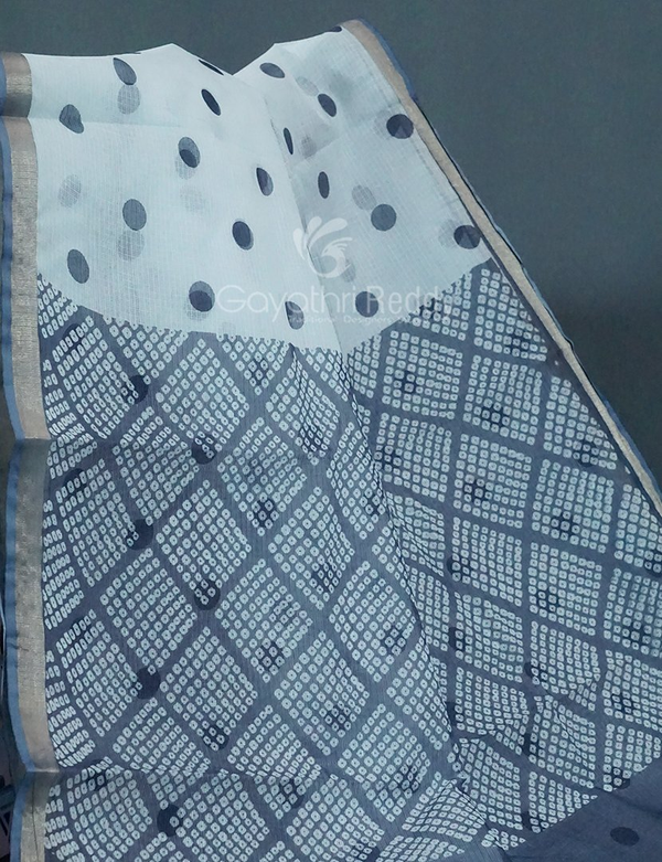 Shades of Cream And Denim Grey Colour With Patli Pallu Design Pure Kota Cotton Saree By Gayathri Reddy Designer Studio