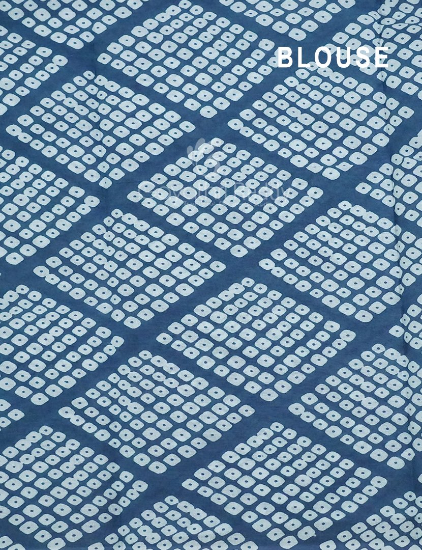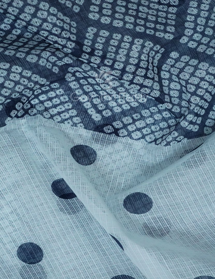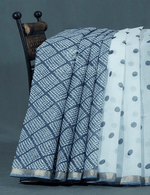 SAREE : Shades of cream and denim grey colour saree with block design with patli pallu style , runs throughout the saree.