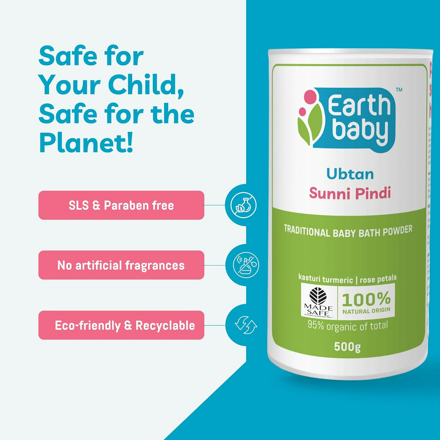 Earthbaby Ubtan Sunni Pindi Soap-Free 100% Natural Baby Bath PowderAbout the product: Traditional Baby Bath Powder with green gram, channa dal, ric...