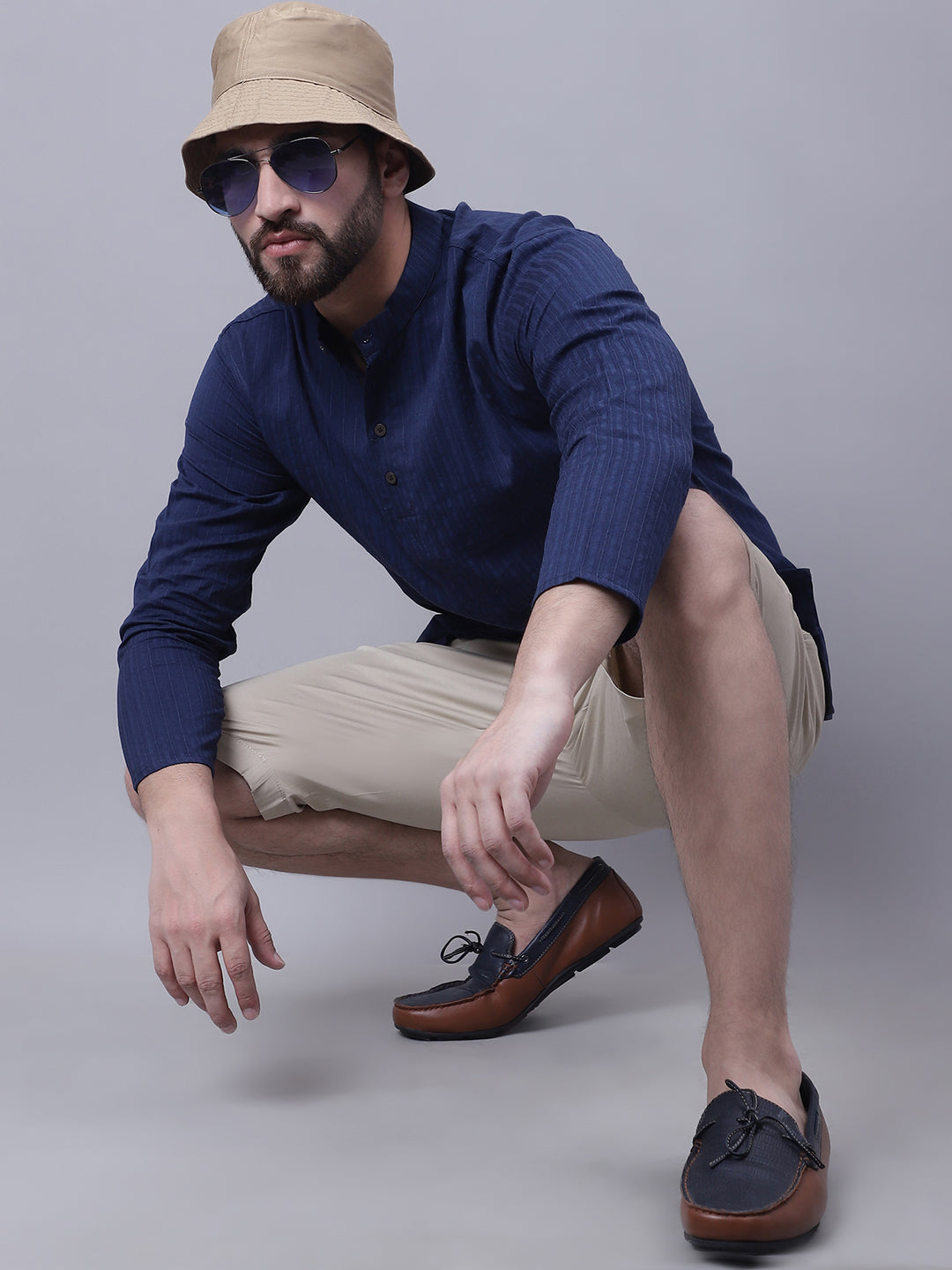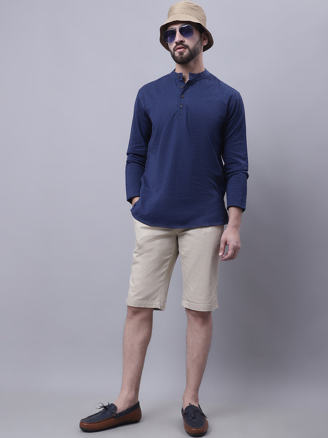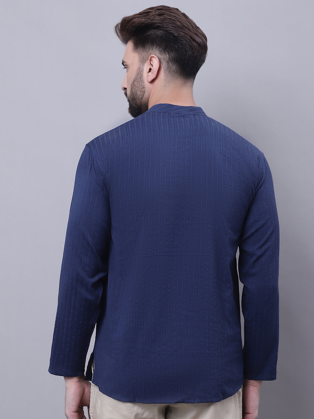 Pure cotton short kurta with band collar.