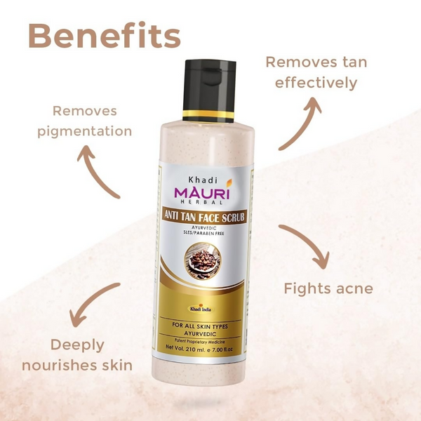 Khadi Mauri Herbal Anti Tan Face Scrub Removes TanAbout the product:ANTI-TANNING AND TONING SCRUB: This facial scrub helps remove blackheads, white...