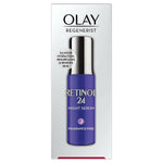 • Discover our latest night serum that combines our propietary blend of Niacinamide + Retinol complex. Olay Regenerist RETINOL24 Night Facial Serum penetrates deep into skin’s surface layers. You’ll see visible improvements in fine lines & wrinkles, smoothness, brightness, firming, dark spots, and pores. Olay RETINOL24 Night Serum delivers a bounty of skin benefits with 24-hour hydration and virtually no irritation. This fragrance free and dye free formula absorbs quickly and goes deep into your skin’s surface so you wake up every morning to younger-looking, radiant skin. Use with Olay Regenerist Micro-Sculpting Cream at night and see the skin transformation in 28 days