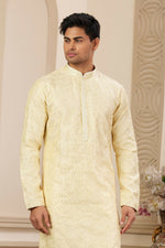 Raivat Ethnic Men's Art Silk Thread Work Kurta Pyjama In Yellow Colour - 34