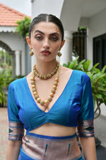 Vishnu Weaves Women's Rama Paithani Silk Zari Woven Saree with Blouse