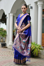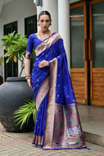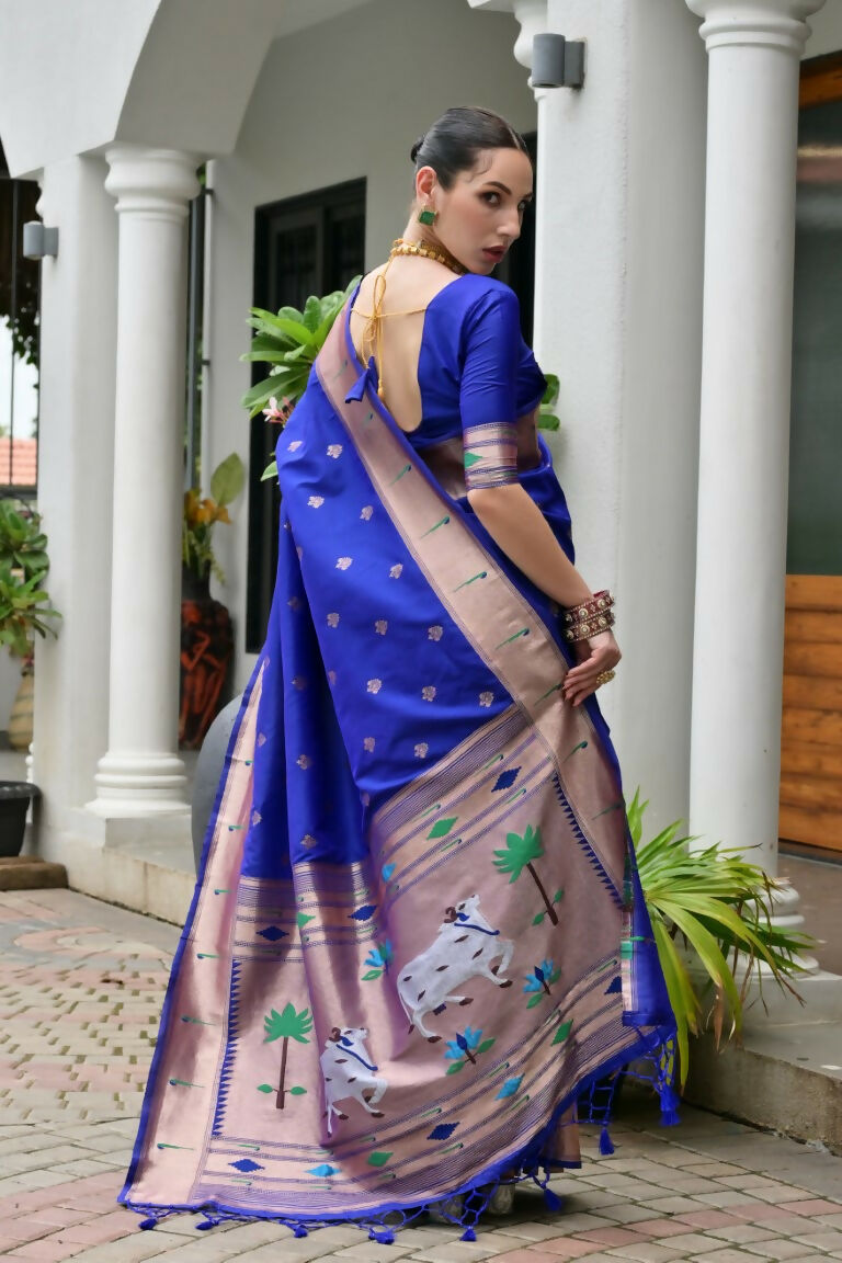 Vishnu Weaves Women's Royal Paithani Silk Zari Woven Saree with Blouse Color: Royal Material: Paithani Silk Legal Disclaimer:  Product color may ...