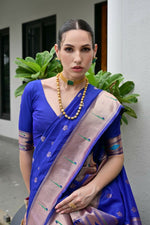 Vishnu Weaves Women's Royal Paithani Silk Zari Woven Saree with Blouse