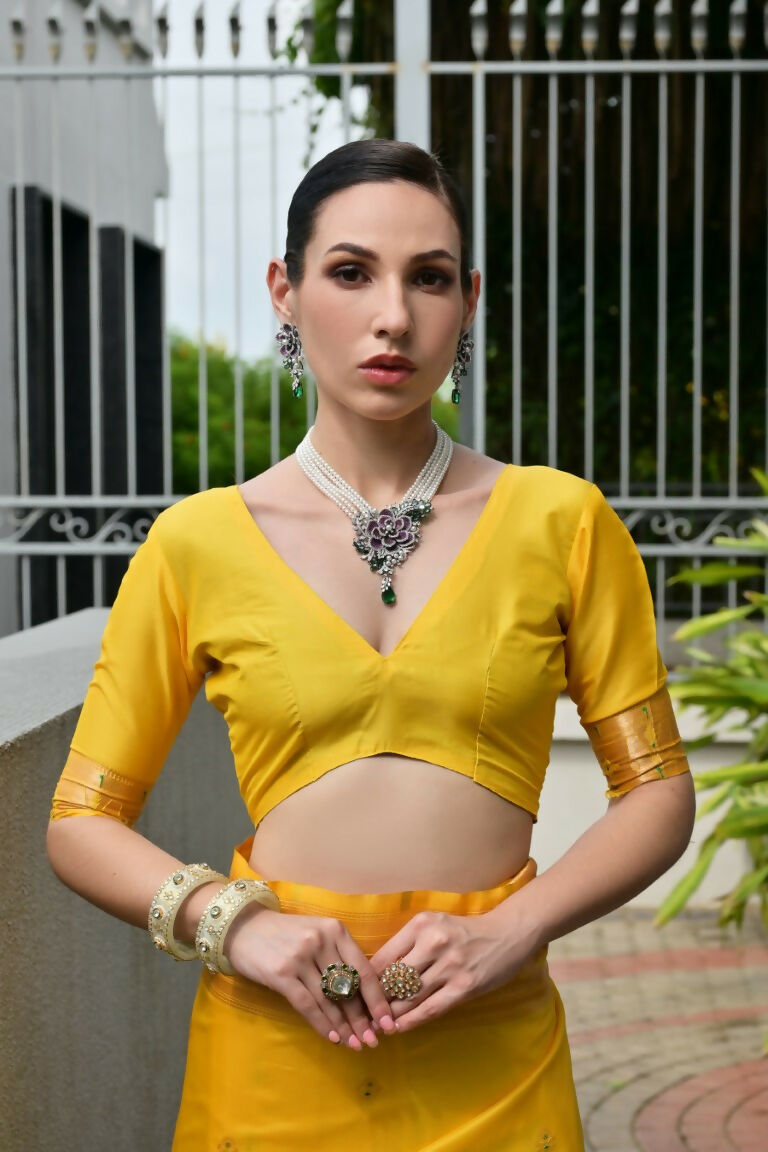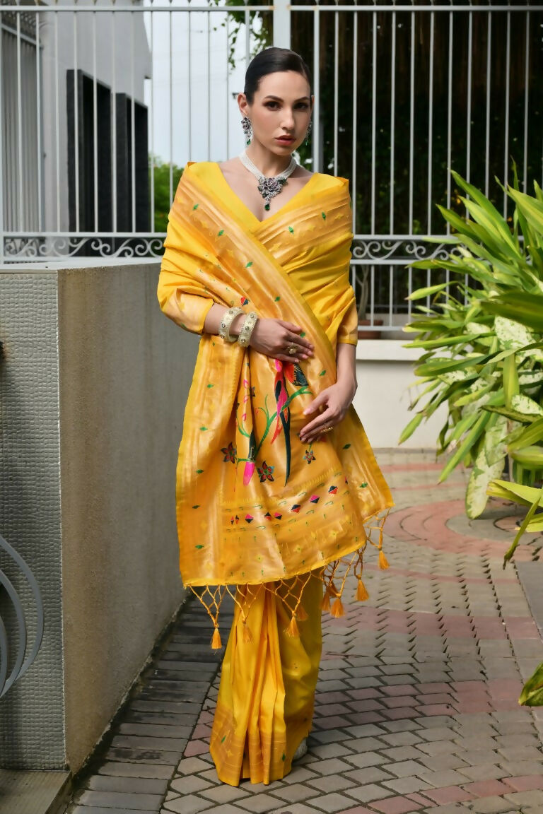 Vishnu Weaves Women's Yellow Paithani Silk Zari Woven Saree with Blouse Color: Yellow Material: Paithani Silk Legal Disclaimer:  Product color ma...