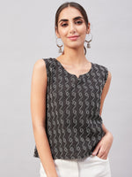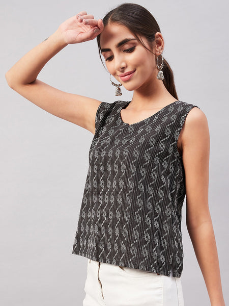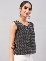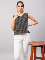 InWeave Black Kantha Ikkat Print W/U Top - Distacart