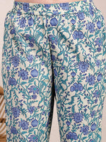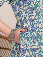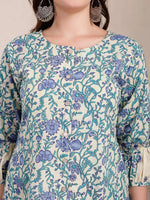 Yufta Blue And Beige Pure Cotton Floral Print Tiered Kurta Dupatta Set Product Details  Blue printed Kurta with Trousers with dupattaKurta design:...