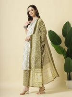 Yufta Green Pure Cotton Paisley Thread Work Kurta Dupatta Pant Set