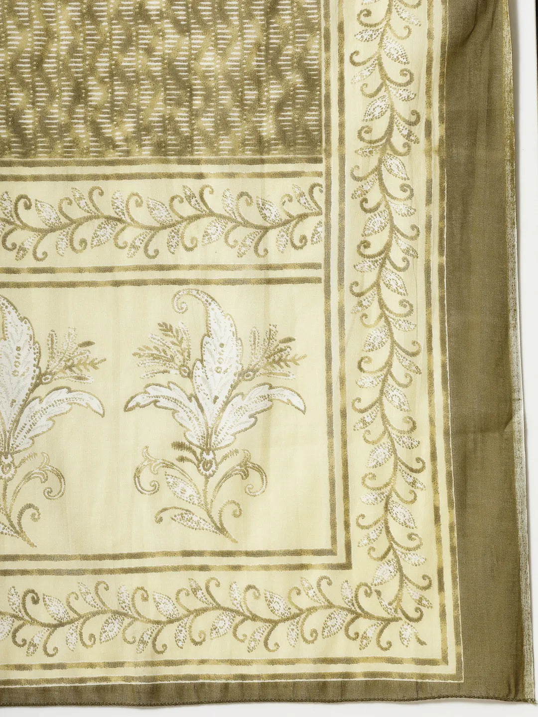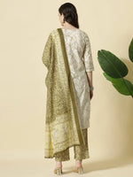 Beige and green printed kurta with trousers and dupatta