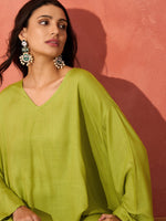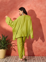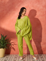 InWeave Pear Green Solid Boho Full Sleeve Co Ord Set