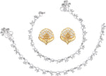 Complete Jewelry Set: Elevate your style with our elegant silver plated anklet and gold plated AD earring set, suitable for girls and women of all ages.