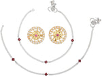 Complete Jewelry Set: Elevate your style with our elegant silver plated anklet and gold plated AD earring set, suitable for girls and women of all ages.
