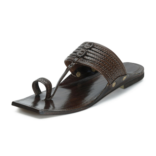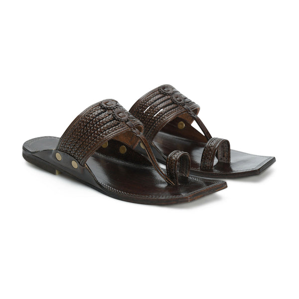 Stepsoft Men'S Brown Sqaure Toe Kolhapuri Chappal | Handcrafted Leather Slip-On Ethnic Footwear