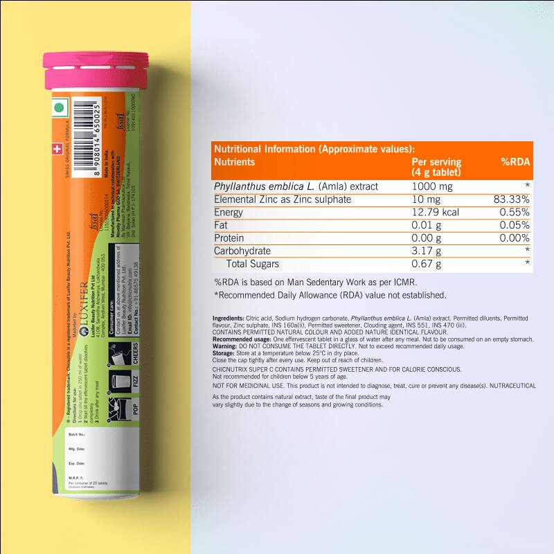 Chicnutrix Super C - Amla Extract & Zinc Effervescent Tablets - Orange Flavor