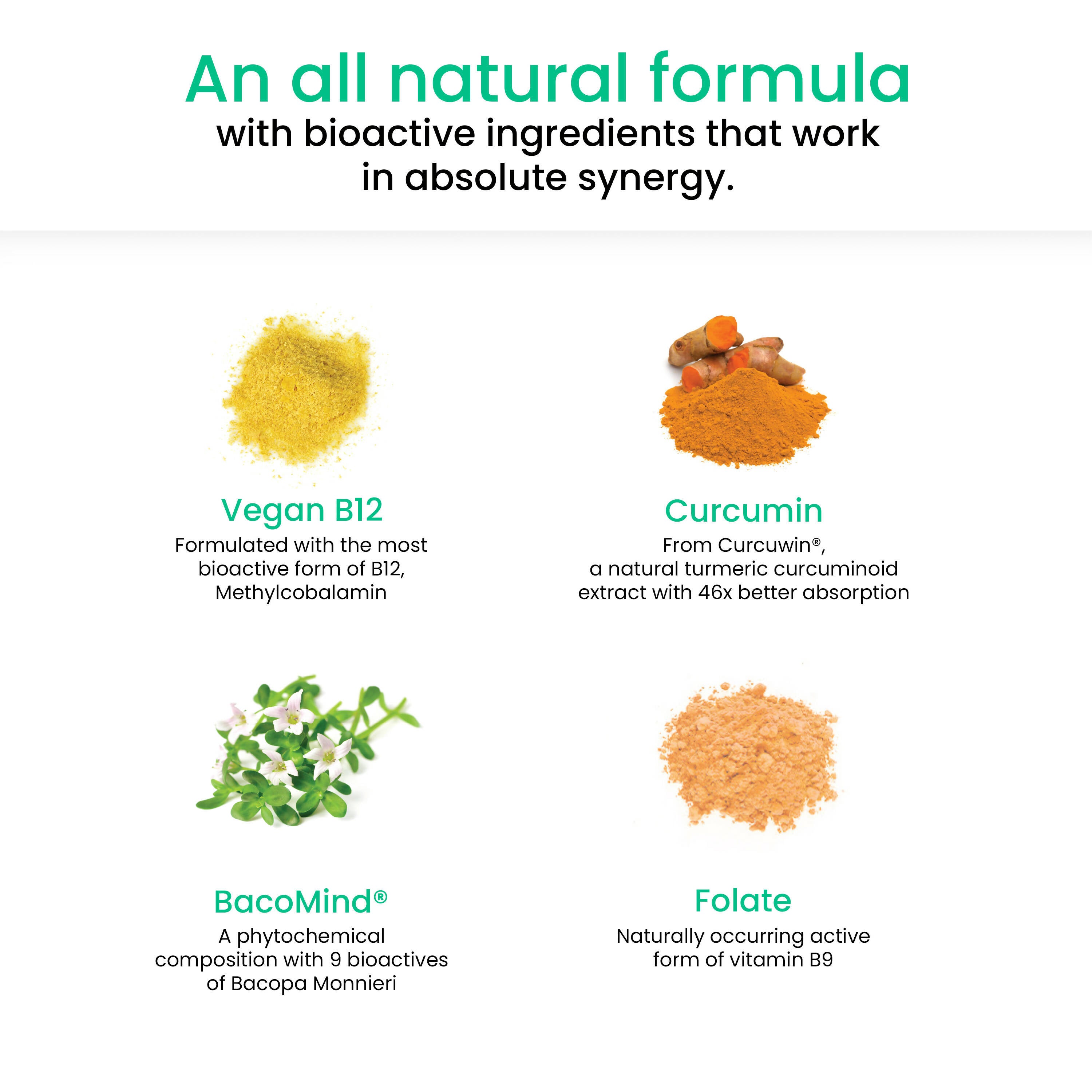 • Plant Based Vegan B12 meets Folate to counter deficiencies, increase energy levels, and promote cognitive health.