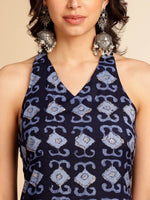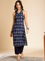 Anouk Geometric Printed Kurta Product Details Colour: navy blue  Geometric printed V-neck Sleeveless, no sleeves Straight shape with regular s...